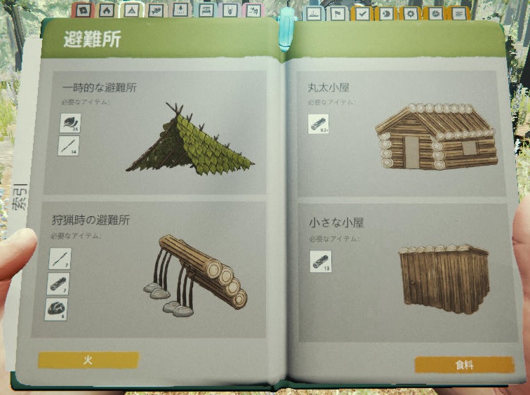 • 一番簡単で効率的なシェルターは、原住民の三角形の家の入り口に「ドア付きの壁」を設置して、中に「狩猟時の避難所(Hunting Shelter)」を建てるのがある程度の広さを持った上に楽で丸太の数も少なくて良い。 -- 2021-08-09 (月) 16:09:26