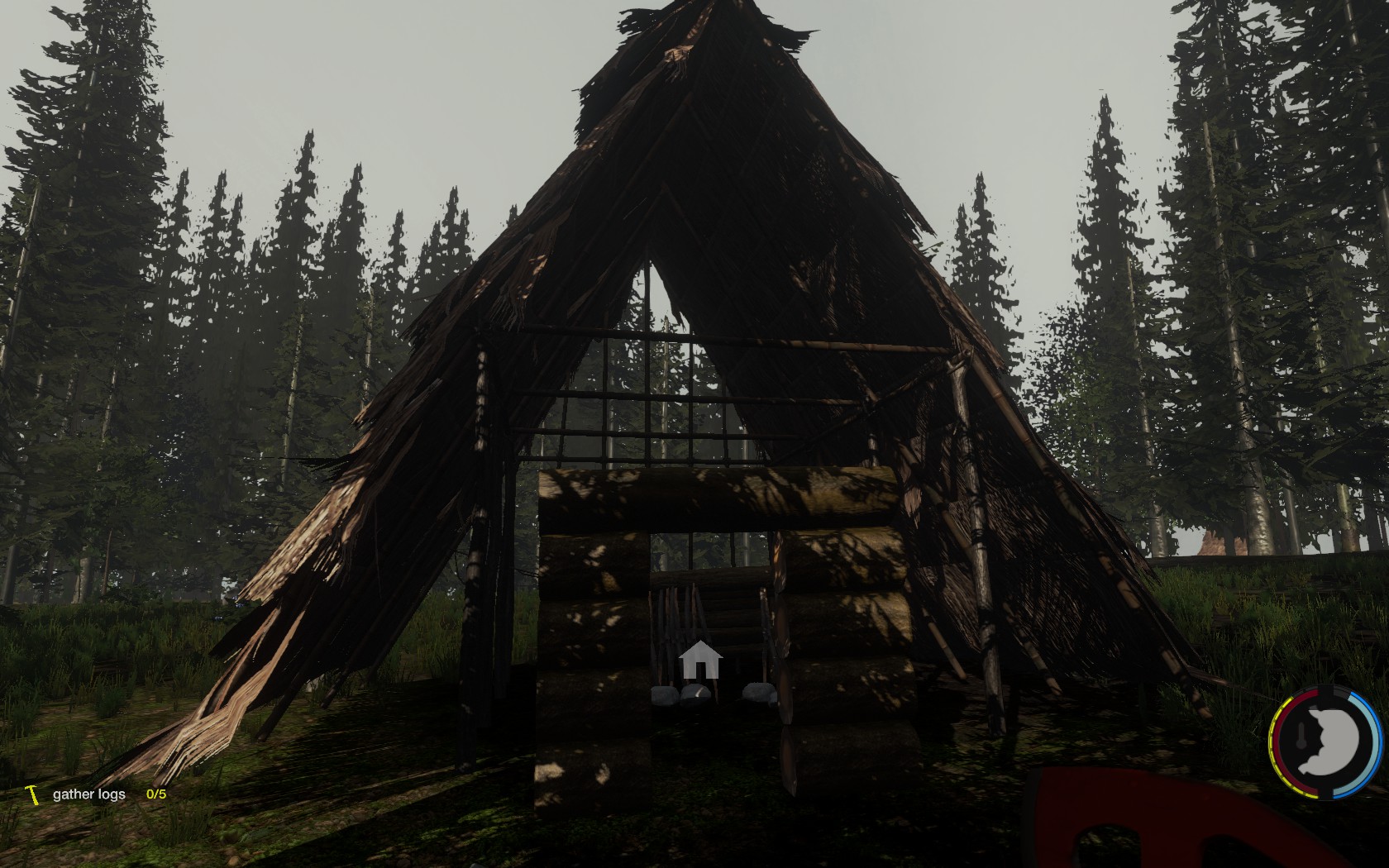 変異体の家にドアの拡張建築を行い、ハンティングシェルターを中に設置したもの。