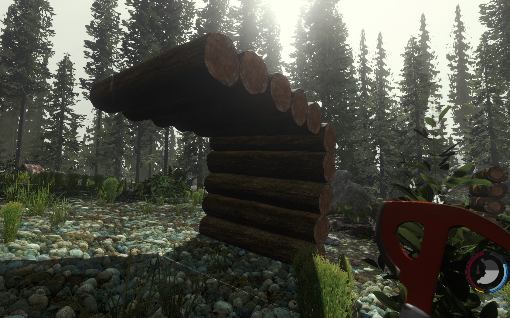ログハウスの壁的なもの。屋根のように使うこともできるが雨はしのげない。