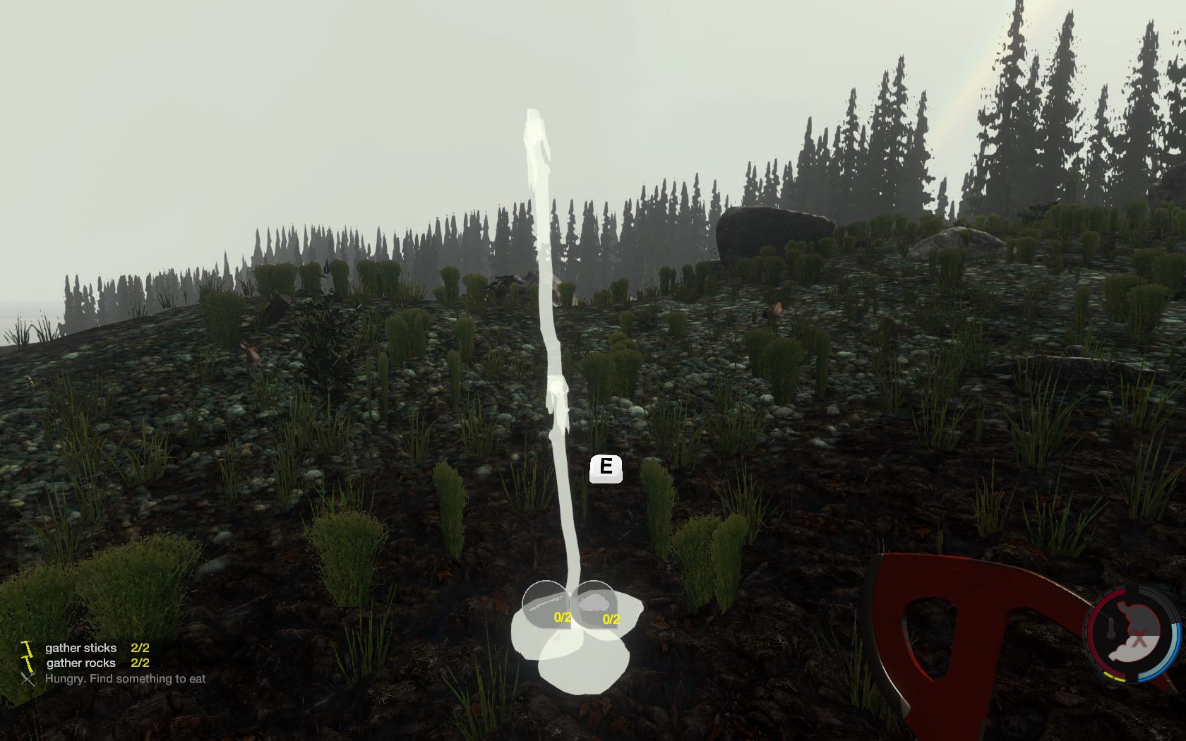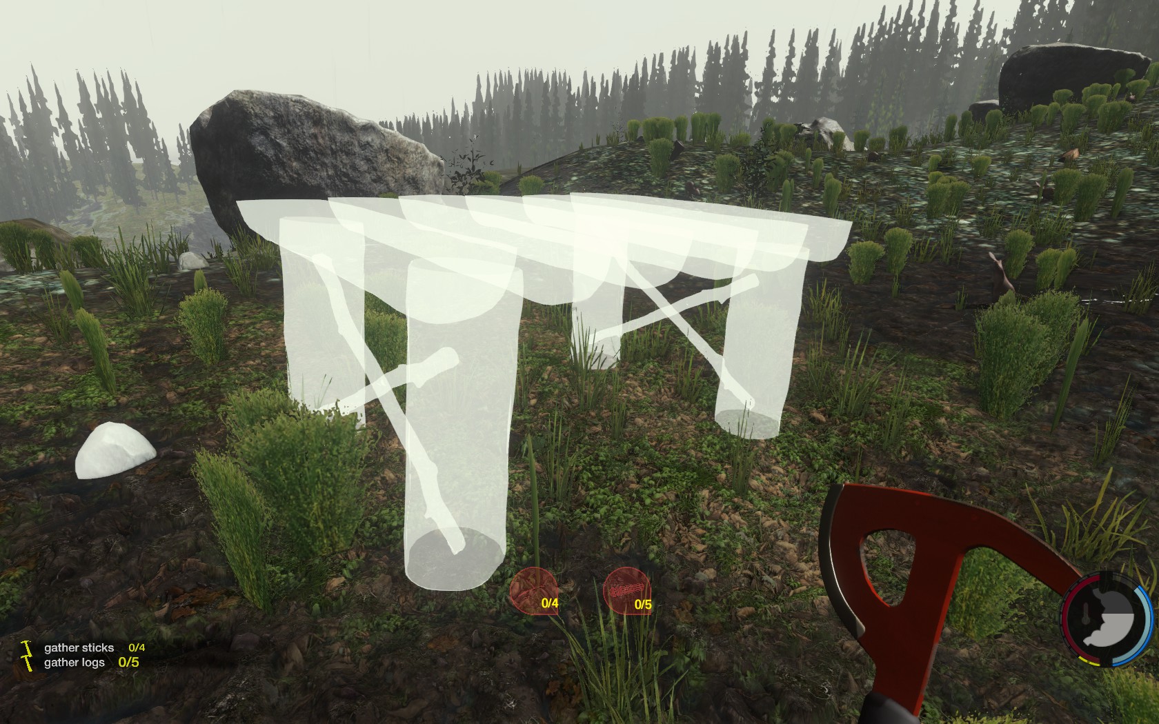 木の枝を組み合わせた柵。柵の高さは主人公がジャンプでギリギリ跳び越せない程度。