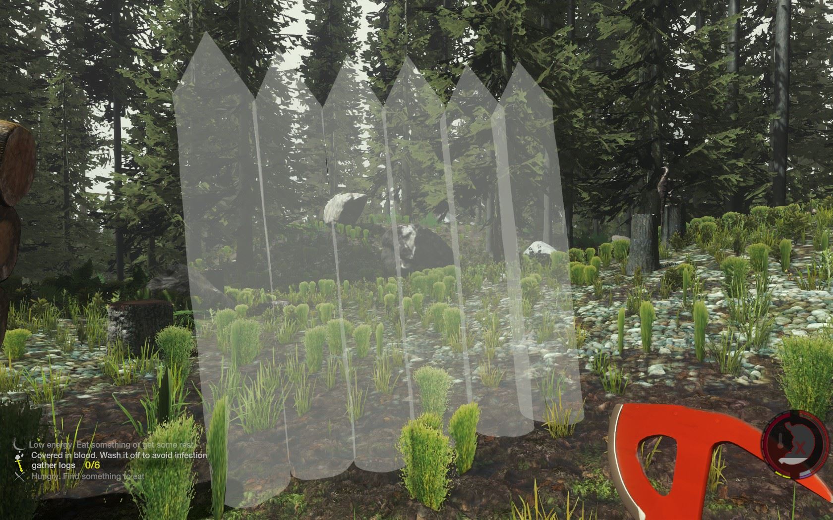 罠がウサギを捕らえた場合は、罠に近づいてEキーでウサギを掴んだ後、左クリックならウサギを絞め殺し、Gキーならウサギを解き放ち、(ウサギの檻に近づいて)Cキーなら檻に入れることが出来る。