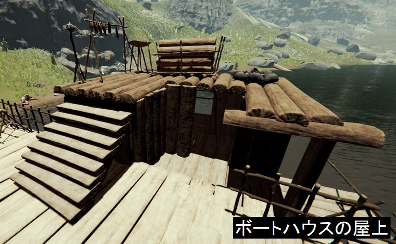 屋上にも設置物を置くことができるため、上れるように発着場を作れば屋上も利用できる。基本的にいかだ類の上では死体を焼けないが、ボートハウスの屋上でのみ、死体を焼くことが可能。