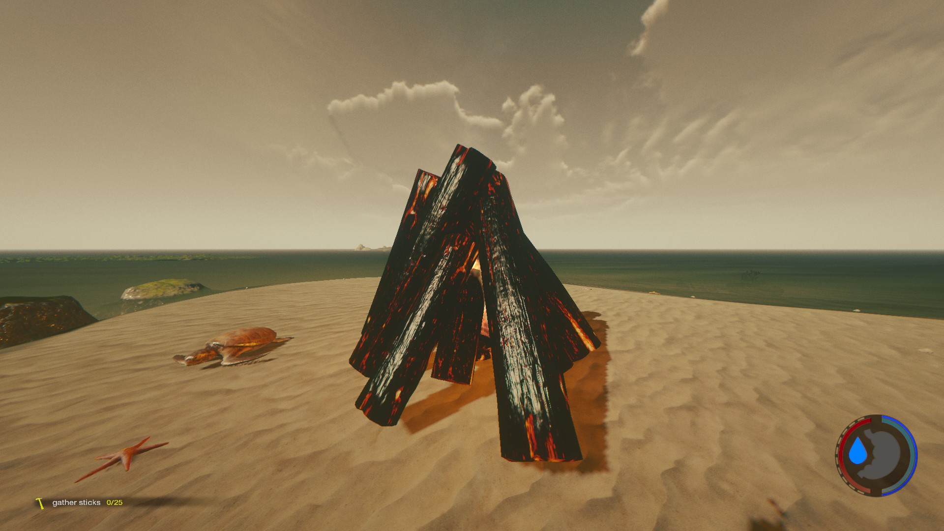 「狩猟時の避難所」を建てられるぐらいの拠点を見つけたら、火の持ちが良い分「基本的な火」よりこちらの方がおすすめ。破壊しない限りは何度でも日を灯せる。