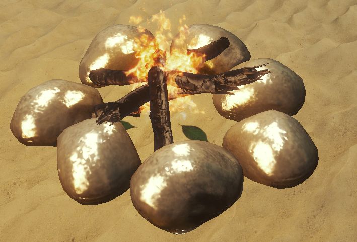 あまり明るくなく火は一定時間経つと消える。調理ができる。攻撃により破壊可。