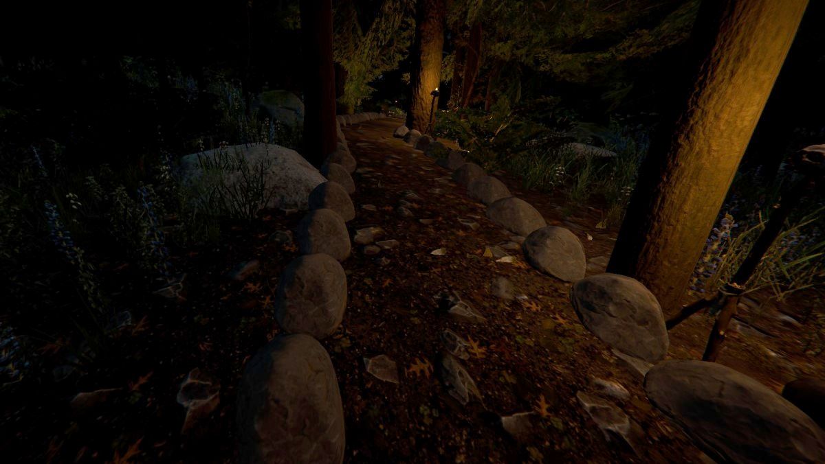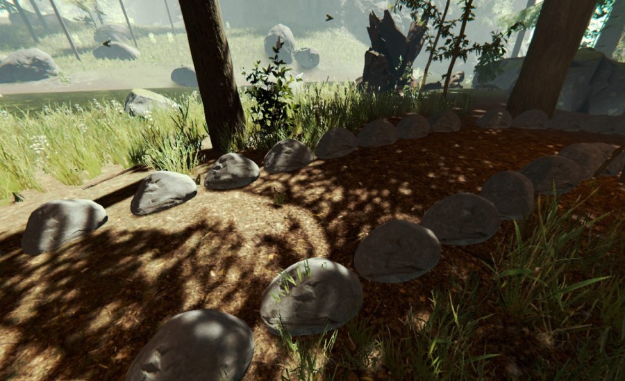 岩の道を設置すると、そこに生えていた草が除かれて道が作られる。