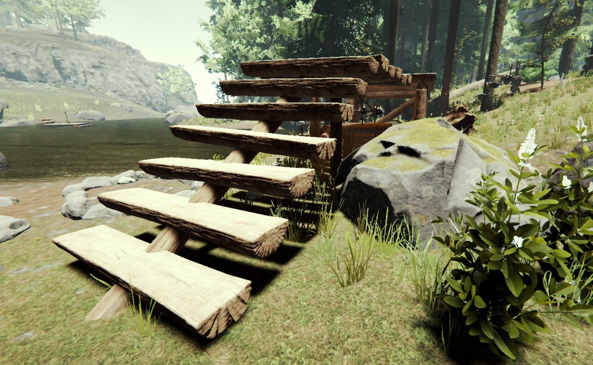 木の通路・乗降場・ガゼボ・丸太小屋・教会・普通の壁・普通の階段を結ぶのに使われる。