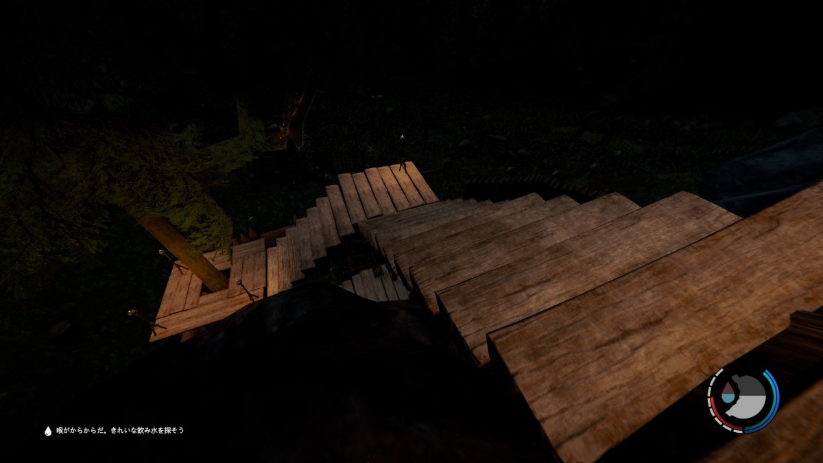 普通の階段。高さをカスタマイズできないが、カスタム階段と違って登山用ロープや木造の橋を取り付けられる利点はある。
